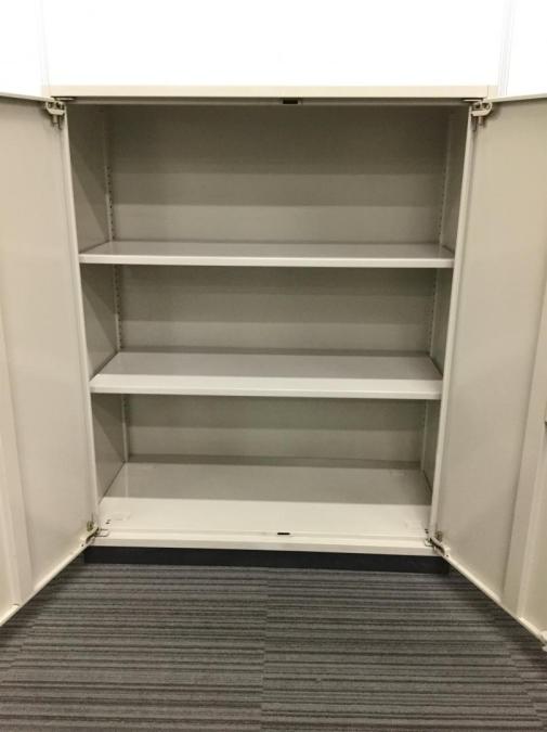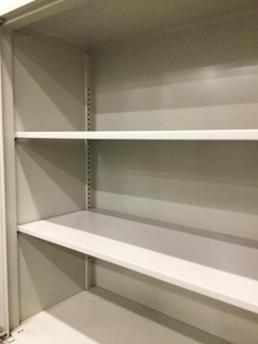 両開き書庫は、扉を開けると内容物が一目瞭然なのが特徴です。