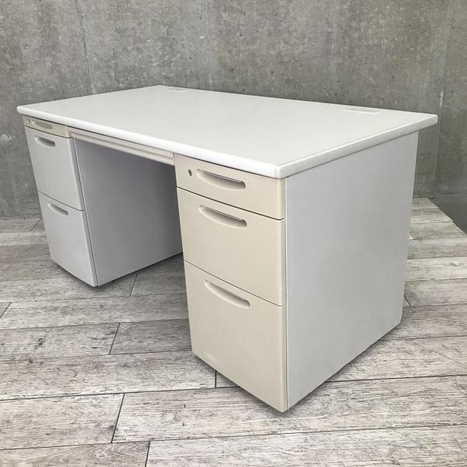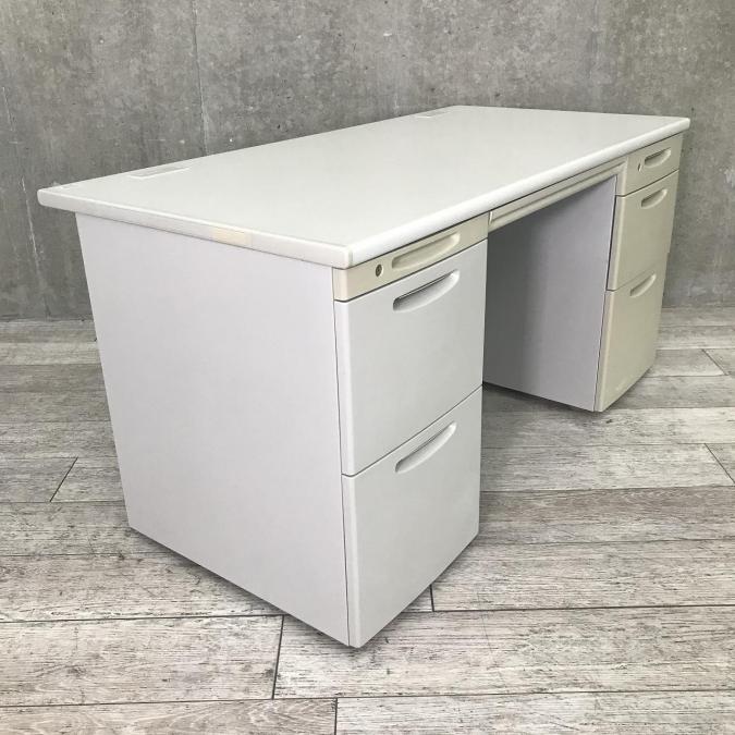 上長席・役員向けサイズ オカムラ SDデスクシステム 両袖机 定番のW1400サイズ 汚れの目立ちにくいニューグレー 鍵付き シリンダー錠