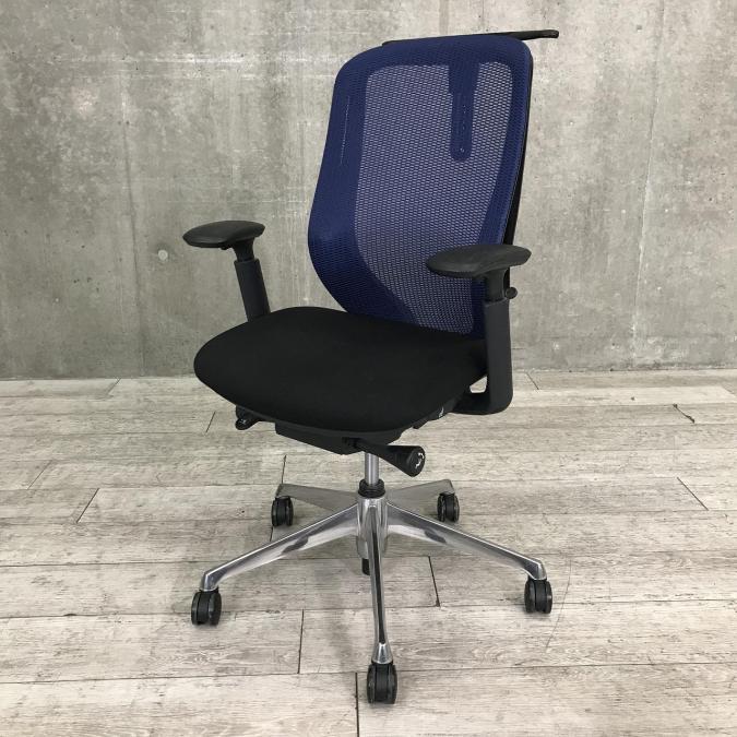 【新品ヘッドレスト交換済み】オカムラ/シルフィー/ブルー/可動肘