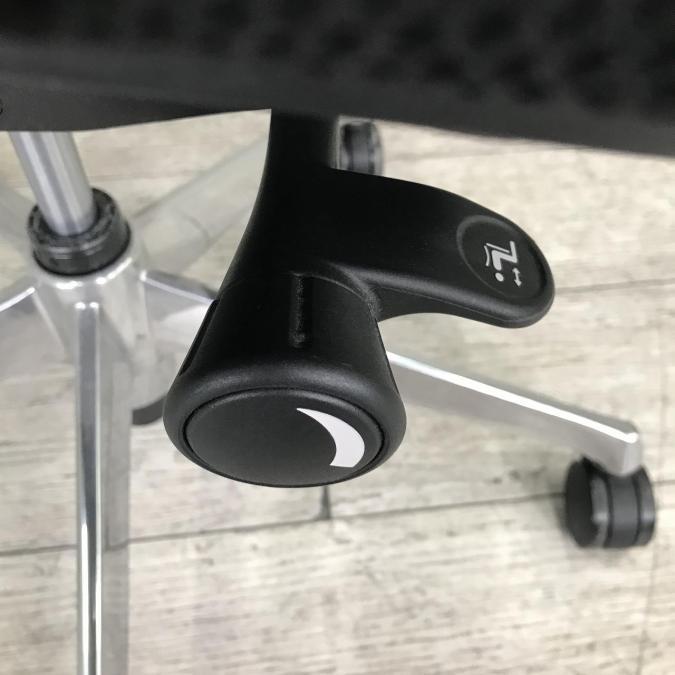 - 座面右下のダイヤル操作で、リクライニングの強弱調整が行えます。これまでのダイヤル式よりも、少ない回転数で、最弱?最強の調整が可能です。