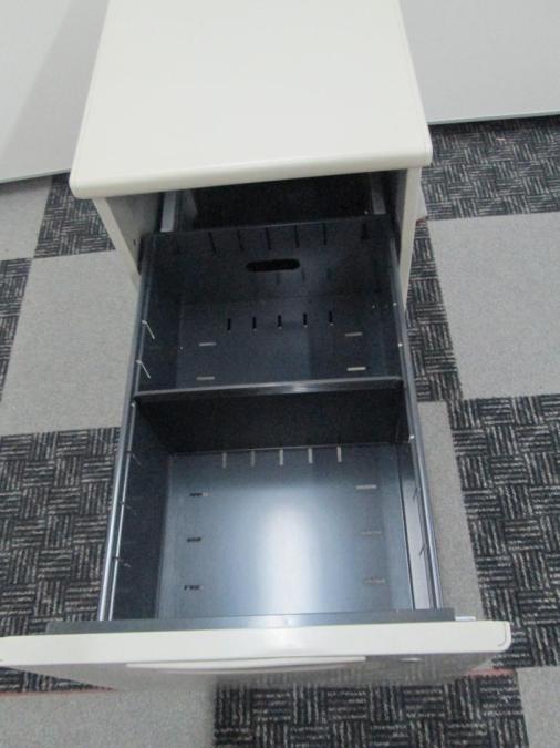 - 一部不具合ありその脇机・ワゴンの本来の効用を果たすための機能以外の一部が使用不可な状態。(例、引出が開閉しづらい、 キャスターロック機能使用不可、ラッチ不良 等がある。)