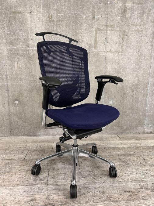 【オカムラ製の最高級チェアが残り1脚限りです!!】オフィスバスターズ 東大阪店 オカムラ製 コンテッサ シリーズ ダークブルー アジャストアーム※可動肘 背/座面メッシュ ランバー 世界で認められた革新的タスクチェア!人間工学に基づいた快適な座り心地を実現! 肘付きハイバックチェア!! 中古 外部倉庫品