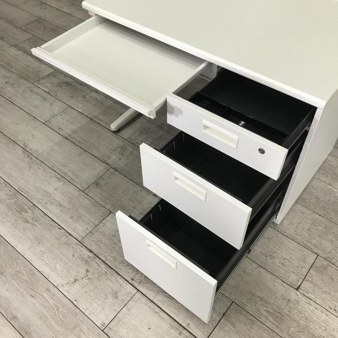 【使いやすいオフィスデスク!】■片袖机 袖机 W1000mm ■ホワイトカラー- 池袋店