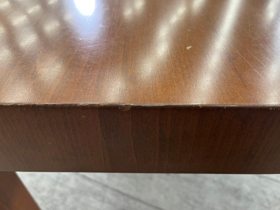 - 目立つ箇所あり傷・凹みが多数、深い傷・凹みが一部ある。(例、天板、幕板、棚板、サイド部分、脚部等にある。)