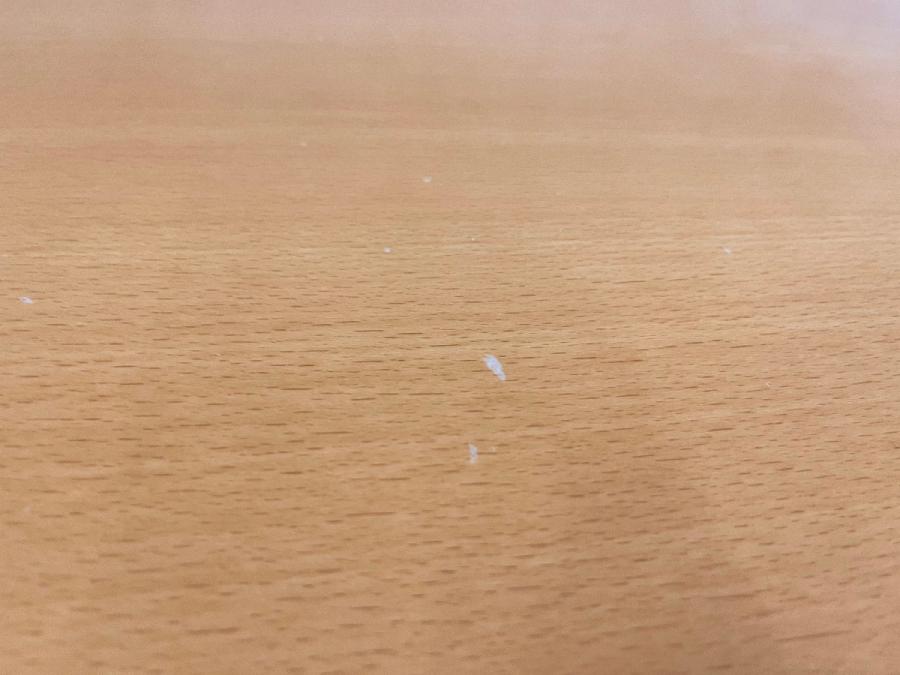 - あり黄ばみ・変色が広い範囲にうっすらある、または濃い黄ばみ・変色が一部ある。(例、天板、幕板、棚板、サイド部分、脚部等にある。)