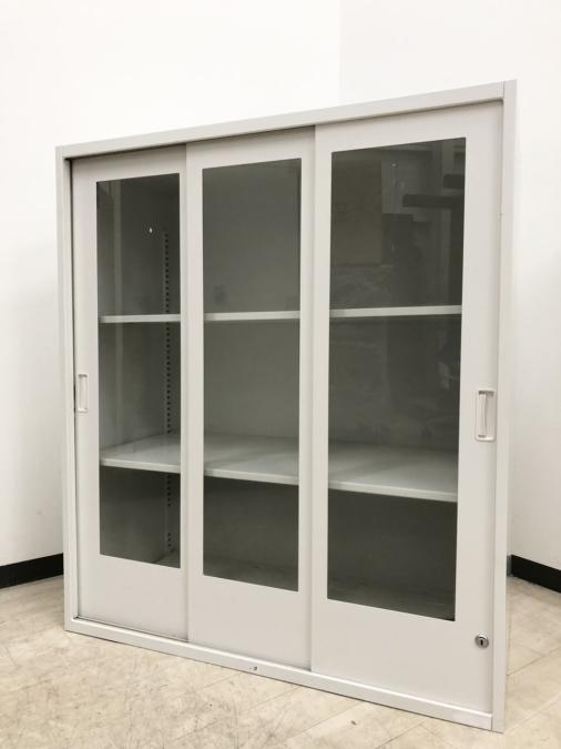 【イトーキ製の開閉スペースを確保した人気のキャビネット!】■3枚引き違いキャビネット ■イトーキ ■シンライン ■幅800mm×奥行き450mm×高さ1100mm 鍵付き書庫 オフィスバスターズ東大阪店