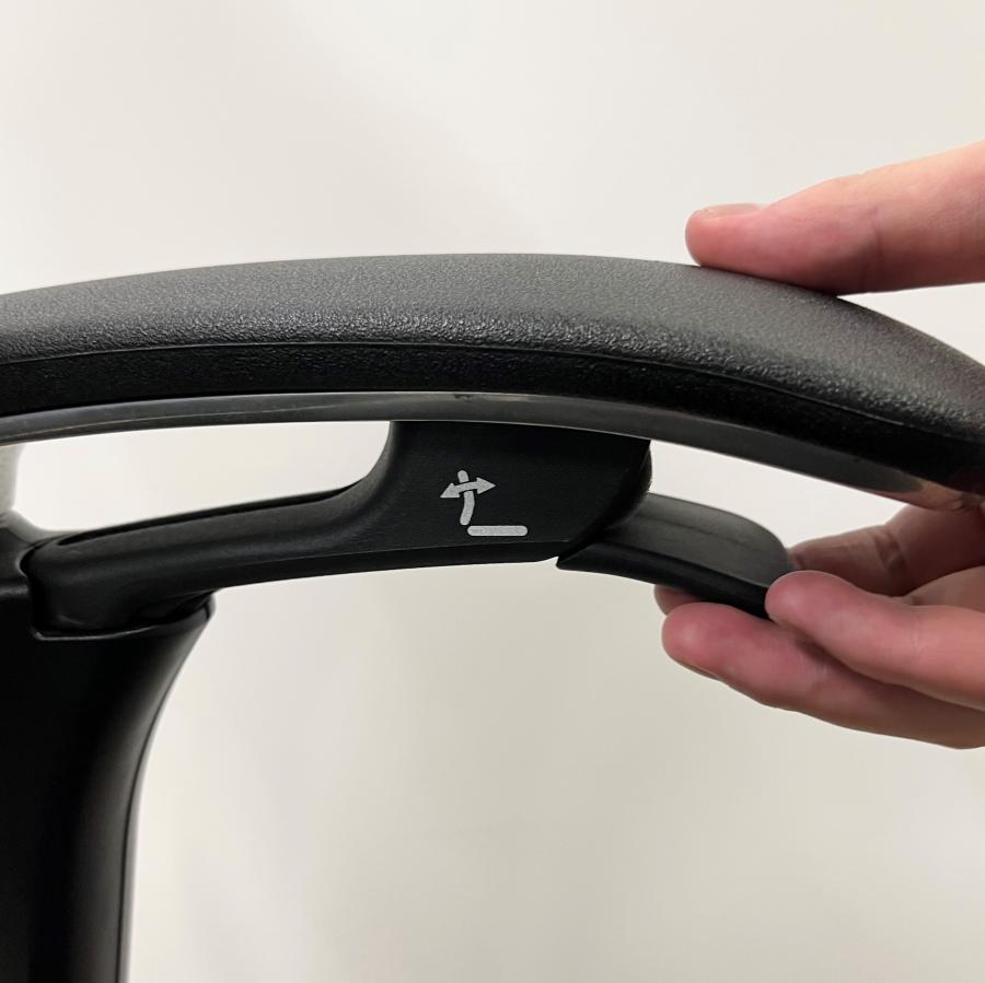 - 座面の前後スライド調整レバーで操作(前後50mm分調整で)できます。(グラデーションサポートメッシュタイプを除く)