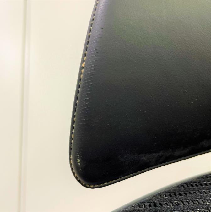 - あり黄ばみ・変色が広い範囲にうっすらある、または濃い黄ばみ・変色が一部ある。(例、座面・背もたれ、脚部等にある。)