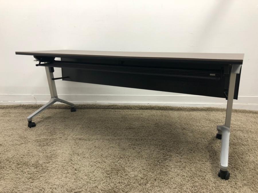 【美しい木目デザイン!】■コクヨ製 サイドスタックテーブル W1800×D600mm アッシュブラウン 幕板付- つくば店