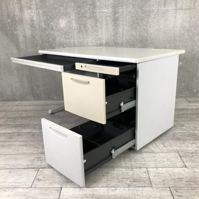 【オカムラの超定番シリーズ!袖一体型で書類をたっぷり収納可能!】■オカムラ (okamura)製 SD-Vシリーズ 片袖机 W1200mm×D700mm ■シリンダー錠 ■ライトグレー 【弊社使用欄:A01034077】