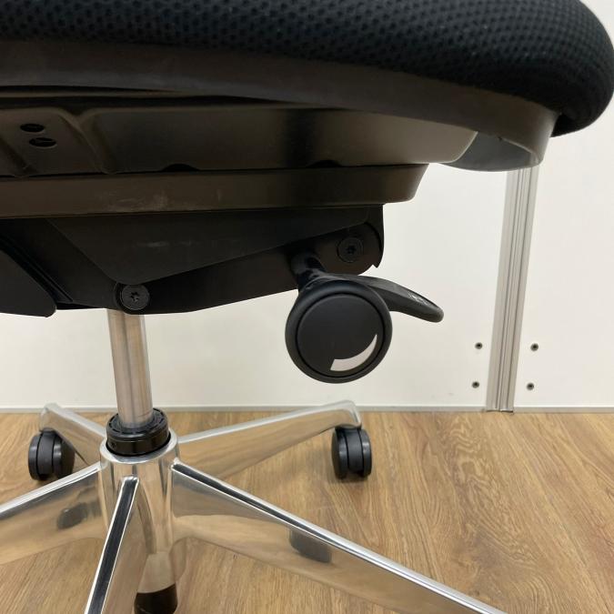 - 座面右下のダイヤル操作で、リクライニングの強弱調整が行えます。これまでのダイヤル式よりも、少ない回転数で、最弱?最強の調整が可能です。