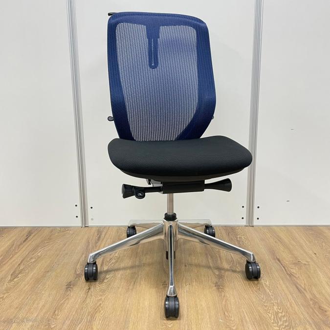 オカムラ製 シルフィーシリーズ ブラック×ブルー 前傾姿勢 コートハンガー付き 肘無しハイバックチェア!!- 京都東寺店