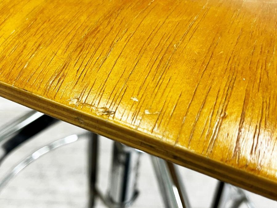 - かなり強い濃い黄ばみ・変色が商品全体にある。(例、座面・背もたれ、脚部等にある。)
