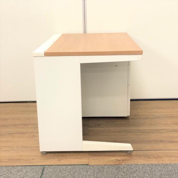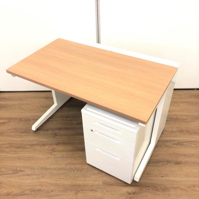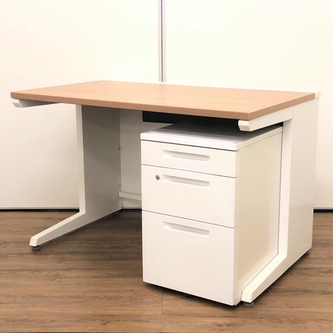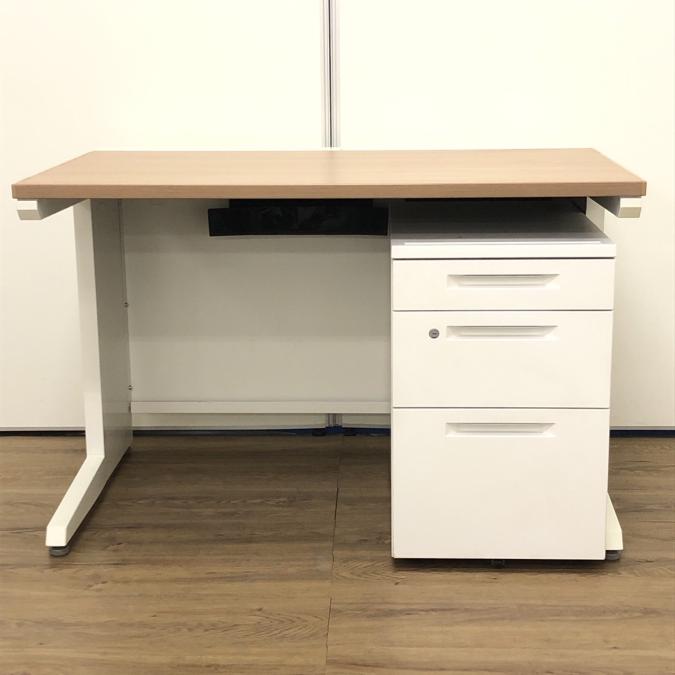 【幅1100㎜タイプでコンパクト!ワイヤリング機能が充実のナチュラル天板の平机!】■オカムラ(okamura) アドバンスシリーズ(ADVANCE) 平机 引き出し付き W1100㎜ ■天板:ナチュラル / 本体:ホワイト