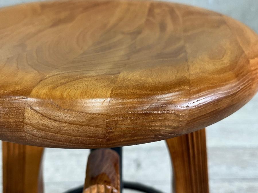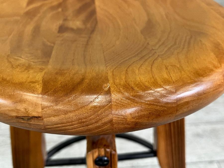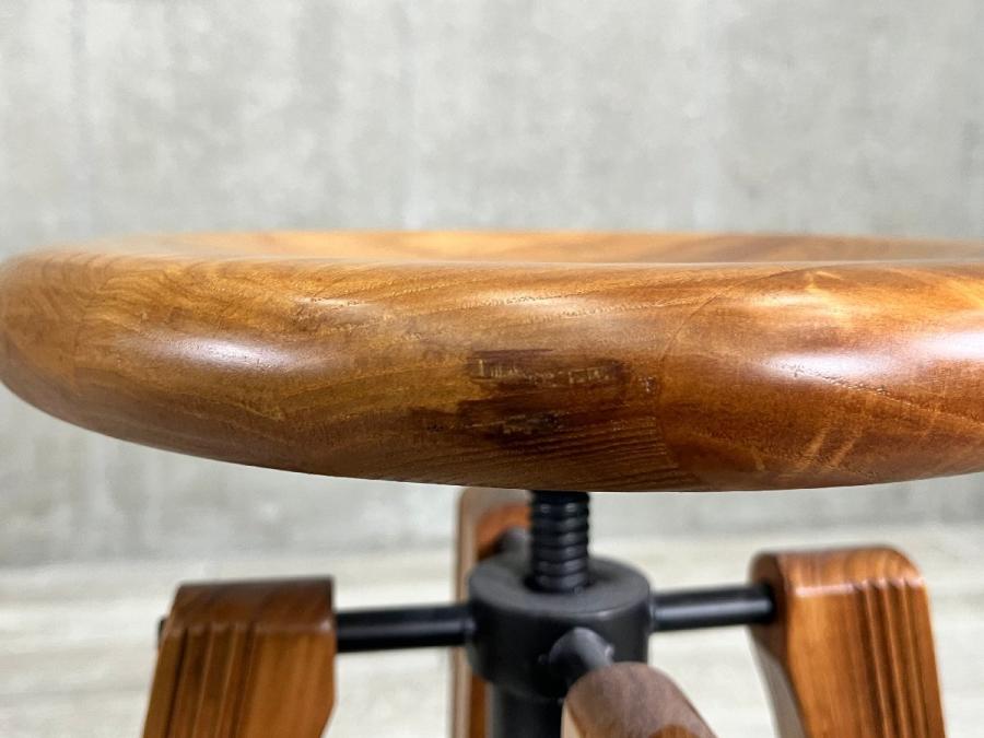 脚部に刻まれたストライプの彫りや、接合部のマイナスネジなど細やかな再現が心をくすぐります。昇降機能がついているため使用シーンに合わせて高さを調整できます。