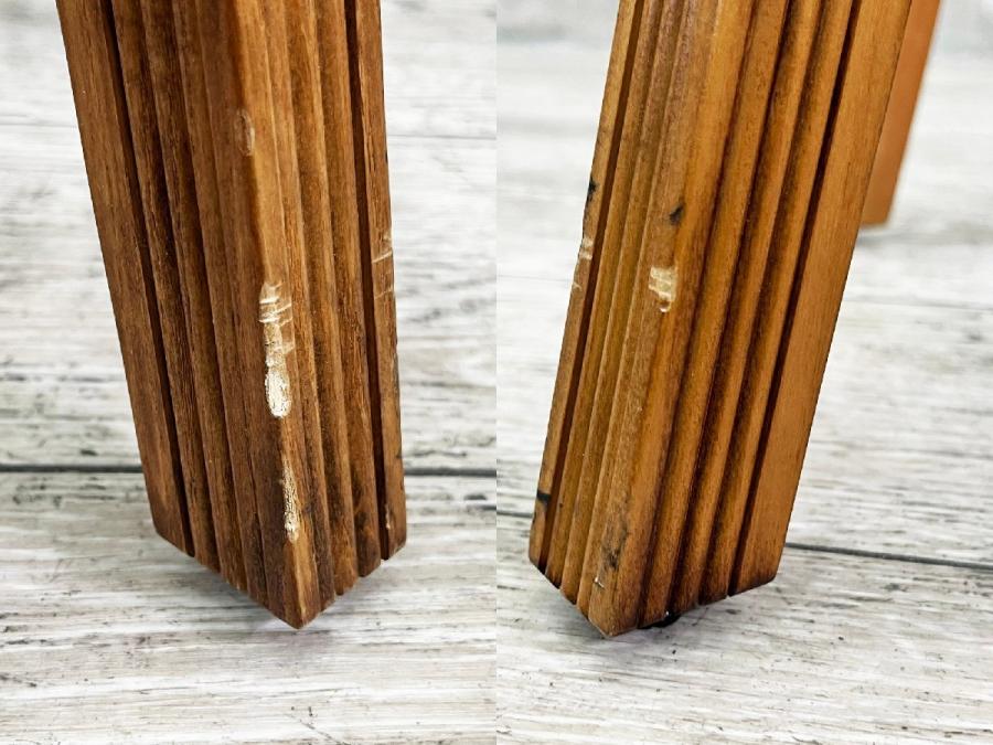 - 目立つ箇所複数あり深い傷・破れ・ほつれ・へたり・しわが商品全体にある。(例、座面・背もたれ、脚部等にある。)