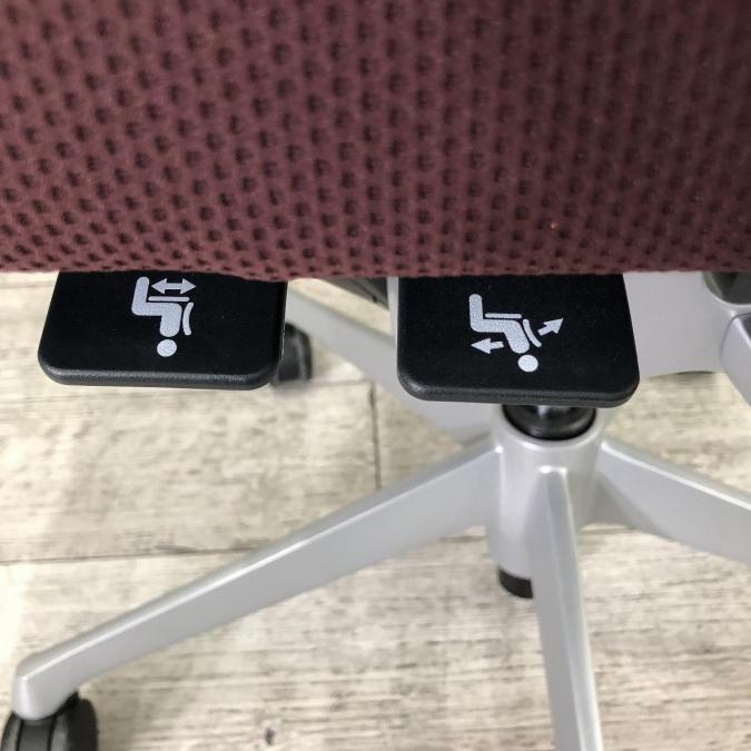 座面の高さや前後などの基本的な調整レバーが座面裏の前方に集約されており、姿勢を変えずに調節ができます。