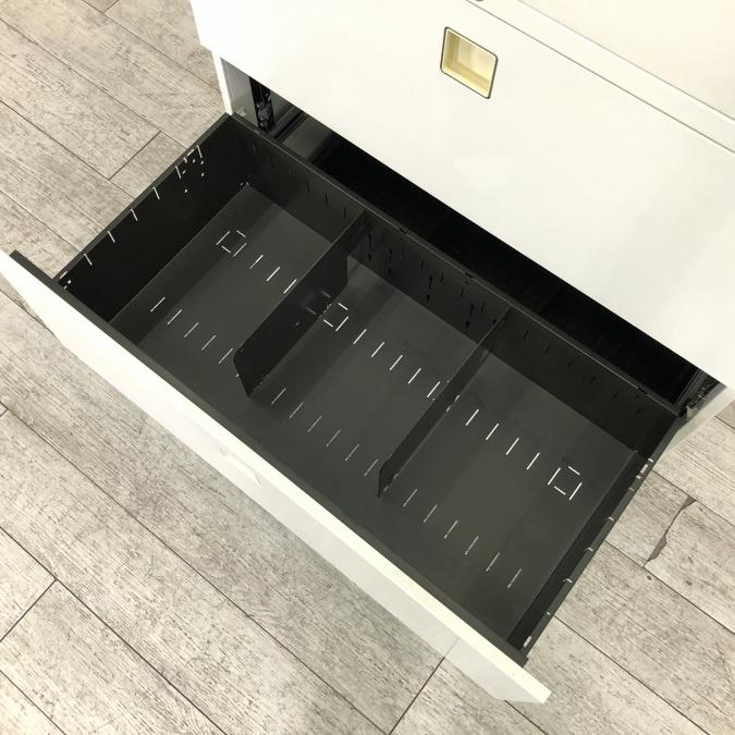 オフィスの必需品!書類をスッキリ整理できる容量の3段キャビネット取っ手がどの方向からでも開くマルチハンドル! ■オカムラ/レクトライン(Rectline)/ホワイト