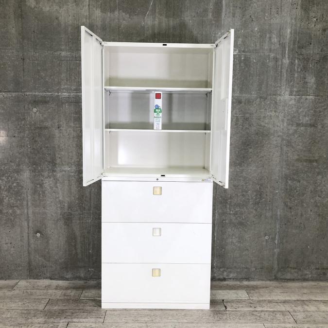 オカムラ レクトライン 3段ラテラル+両開き扉の書庫セット ホワイト シリンダー錠 鍵お付けします 人気商品【愛知・名古屋・豊田・静岡・浜松】