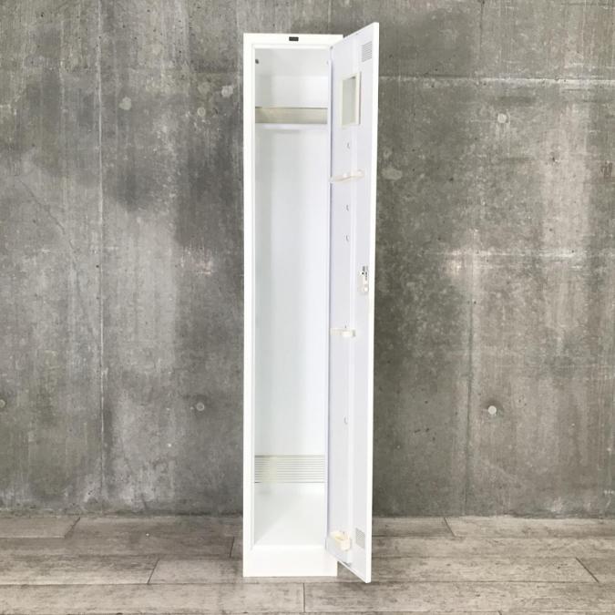 【1台限定】【スリムな1人用更衣ロッカー】【掃除用具入れにも】■内田洋行(UCHIDA)製 システムロッカー 一人用 ■シリンダー錠 ■ホワイト 【弊社使用欄:A00915973】- 在庫数