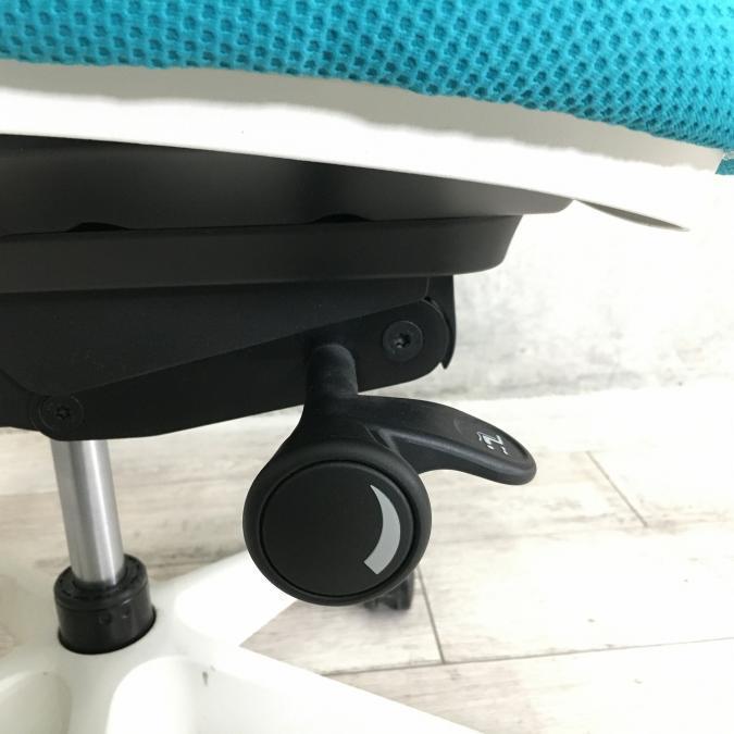 - 座面右下のダイヤル操作で、リクライニングの強弱調整が行えます。これまでのダイヤル式よりも、少ない回転数で、最弱?最強の調整が可能です。