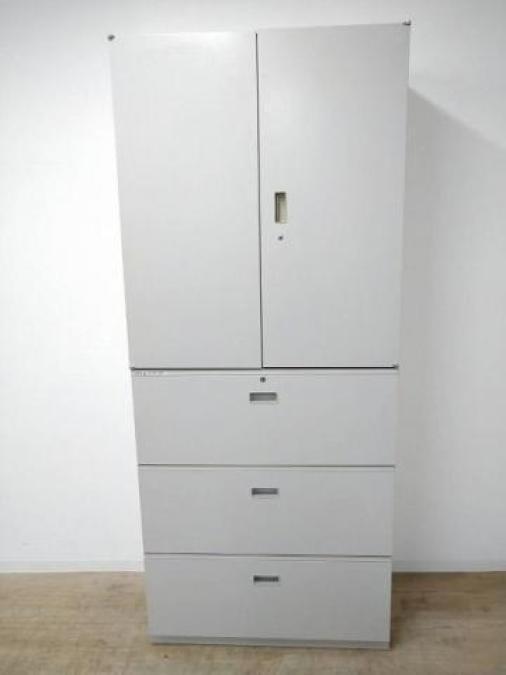 【限定1セット販売中!】◆イトーキ/シンライン グレー 観音開き 3段 引き出し 鍵 収納 ハイキャビネット 中古 博多 天神 九州最大級 オフィスバスターズ