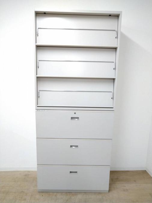 【在庫入替セール】【1台限定】【省スペース化に嬉しい味方!】■イトーキ(ITOKI)製 シンラインシリーズ 書庫セット(3枚引き違い+3段ラテラル) ■シリンダー錠 ■ニューグレー【エレベーター搬入も安心!】【T10】