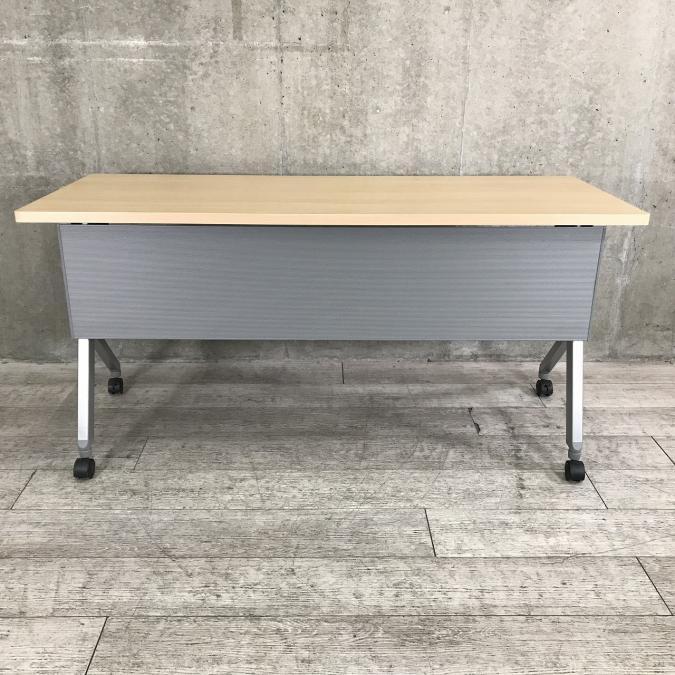【会議やセミナー・休憩室へおすすめ!】オカムラ(okamura)フラプターシリーズ スタックテーブル 幅1500㎜ ■色:ナチュラル 幕板付き【RP】- 埼玉本店