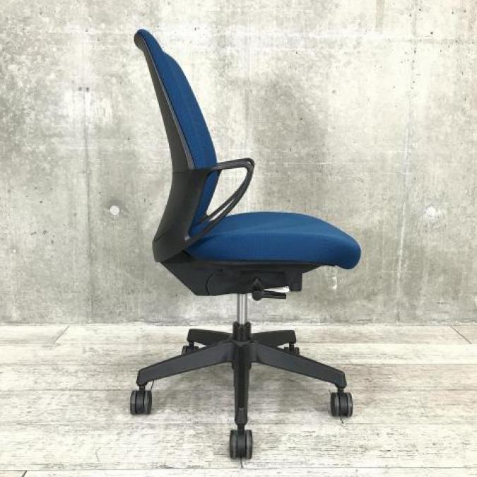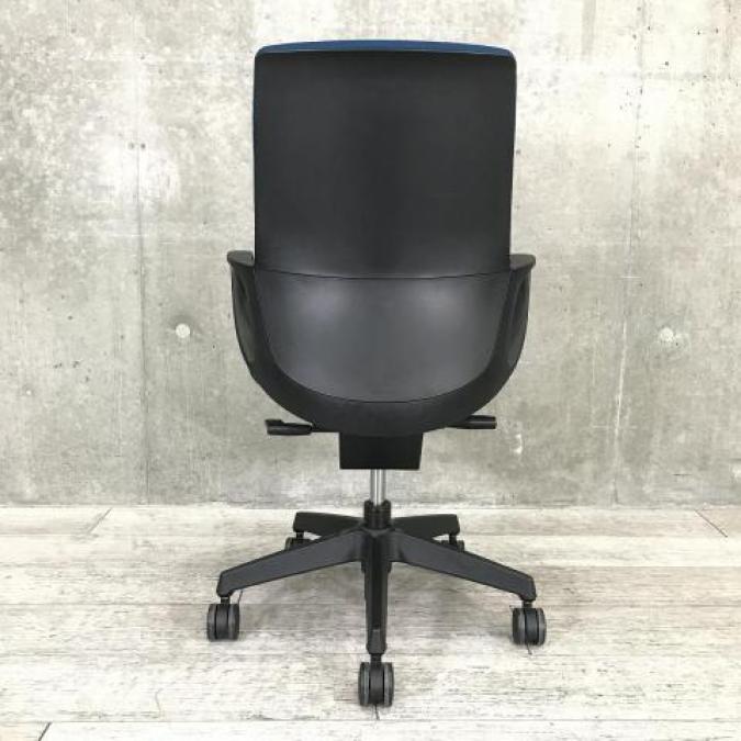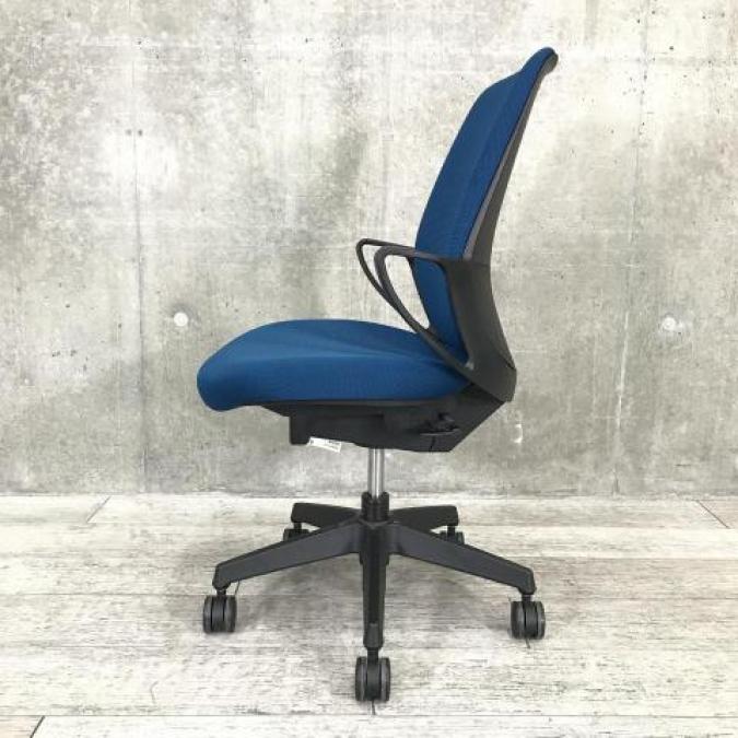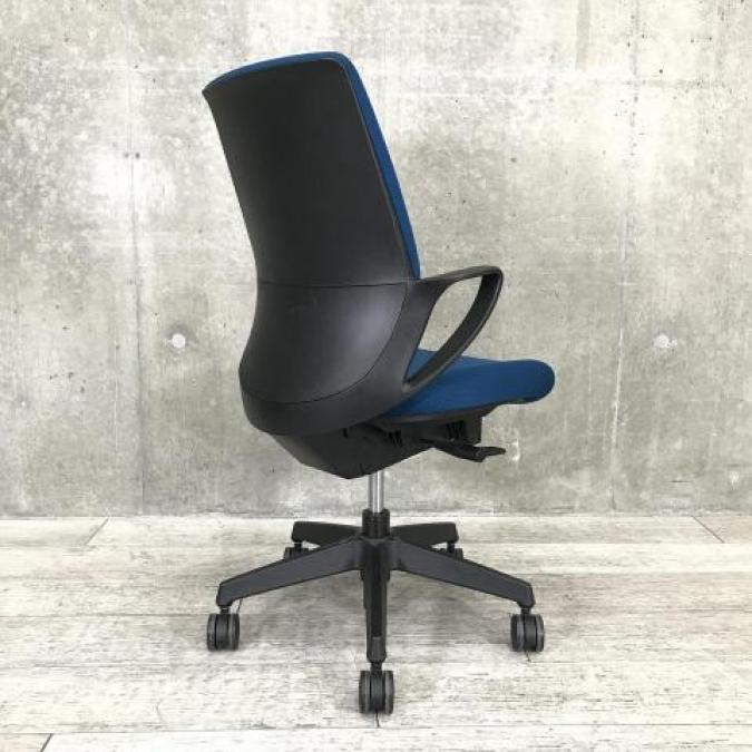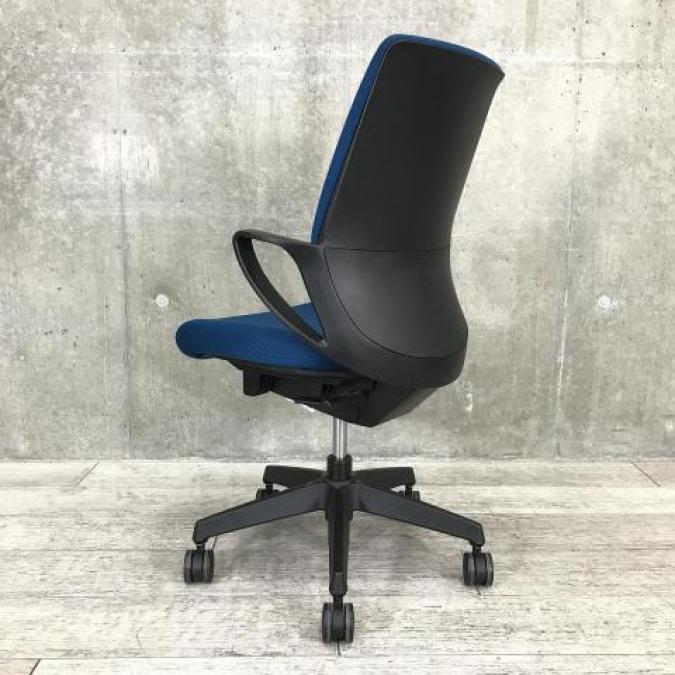 【デスクにスッキリ収納できるコンパクト設計!オフセットアームで必要最低限サイズでにデスクやテーブルに近づくことができ、収納時にも邪魔になりません!】■コクヨ(KOKUYO)製 ピコラチェア(picora) 肘付ハイバック ■固定肘 ■プルシアンブルー×ホワイトシェル×脚ブラック