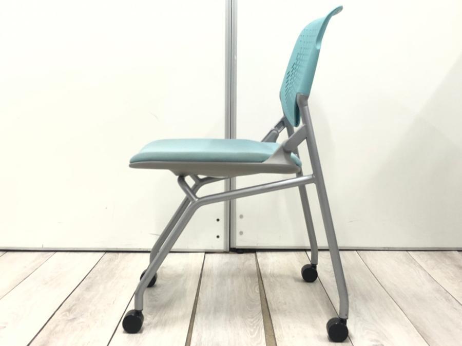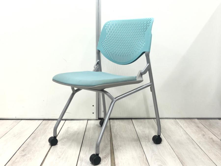 【関東倉庫在庫品】【フレキシブルに使える!使わない時は省スペースで収納可能!】■オカムラ製 ルナ ネスティングチェア ■ライトブルー【弊社使用欄:A01008468】【ECBMC】