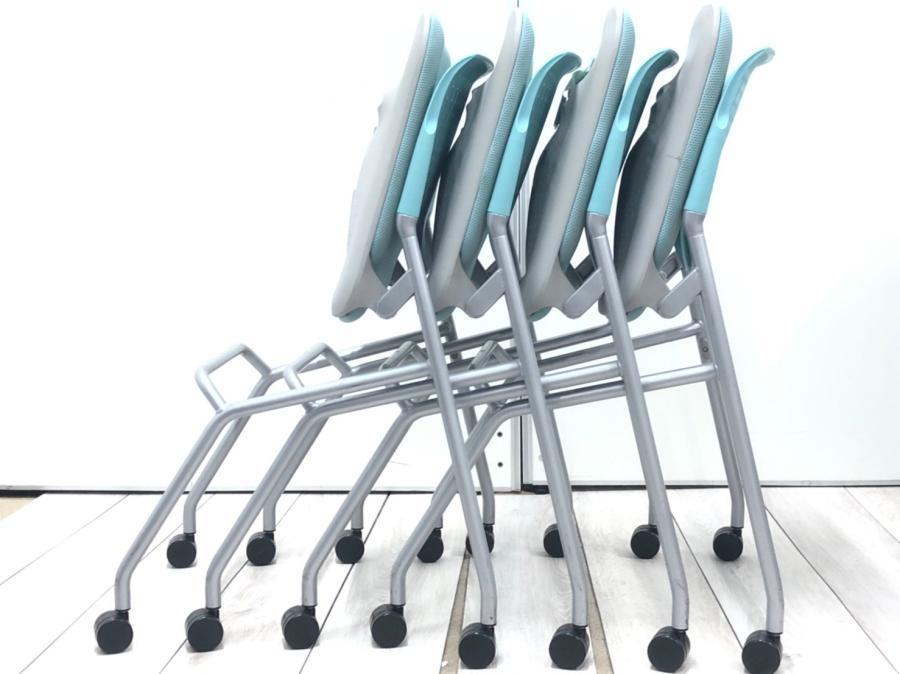【★ネスティングチェアが20脚入荷★】◆オカムラ/ルナ Runa ミーティング 折り畳み 水色 ライトブルー 福岡 博多 天神 九州最大級 オフィスバスターズ