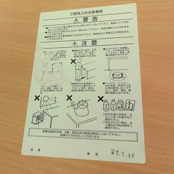 - 壊れている天板歪み、アジャスター無し、キャスター使用不可のようにそのテーブルの本来の効用を果たすための機能に不具合がある。