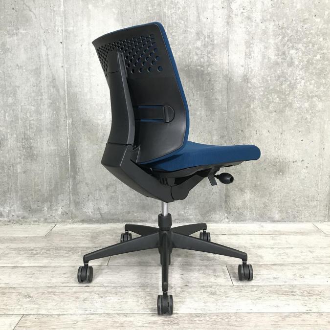コクヨ ウィザード2 ローバック ロングセラーシリーズ プルシアンブルー×ブラックフレーム 肘無しモデル 定番の使いやすいチェア