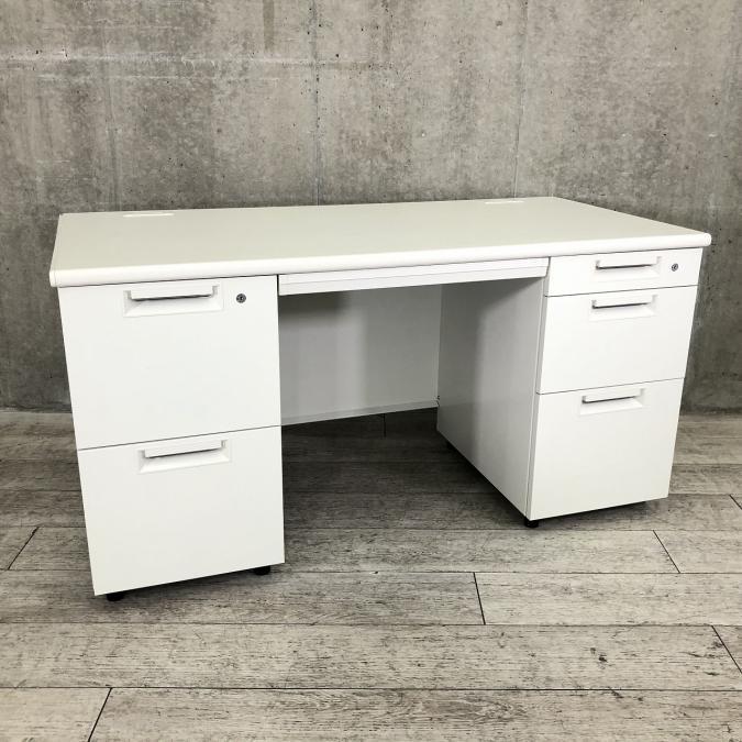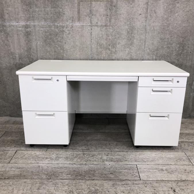 【4台入荷!!】■両サイドにある引き出しで収納力抜群 ■上長用にも! ■PLUS(プラス)フラットライン 両袖机 ■色:ホワイト- 岐阜店