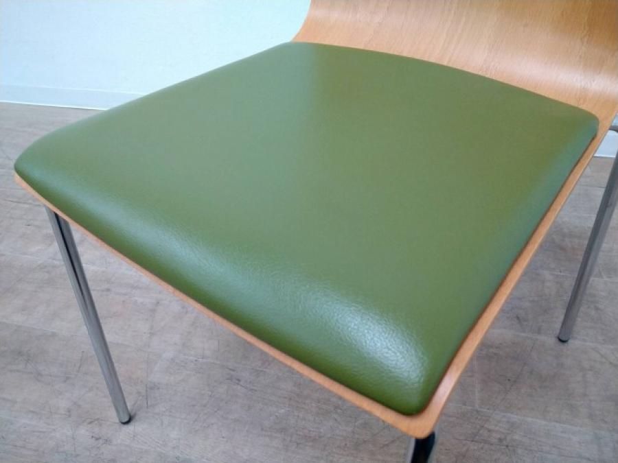 木製で座面がグリーンのクッションで癒し系アイテム!