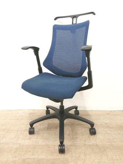 【最先端のデザインに快適な座り心地!】■イトーキ製 エフチェア 可動肘付 ネイビーブルー ■三次元フォルムが腰にフィット!【在庫入替セール品(本在庫限定価格)】