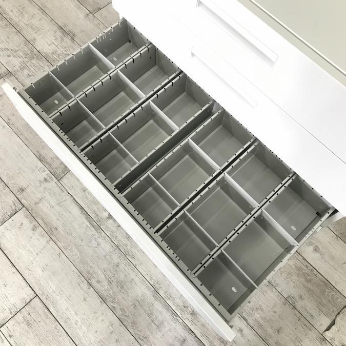 引出しの中も細かく仕切る事が出来ますので、小物などを保管するのに最適です。