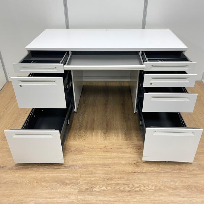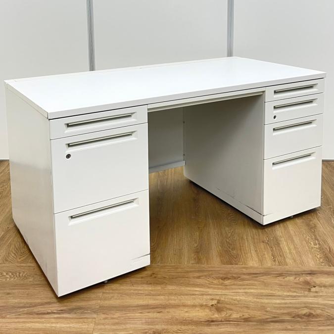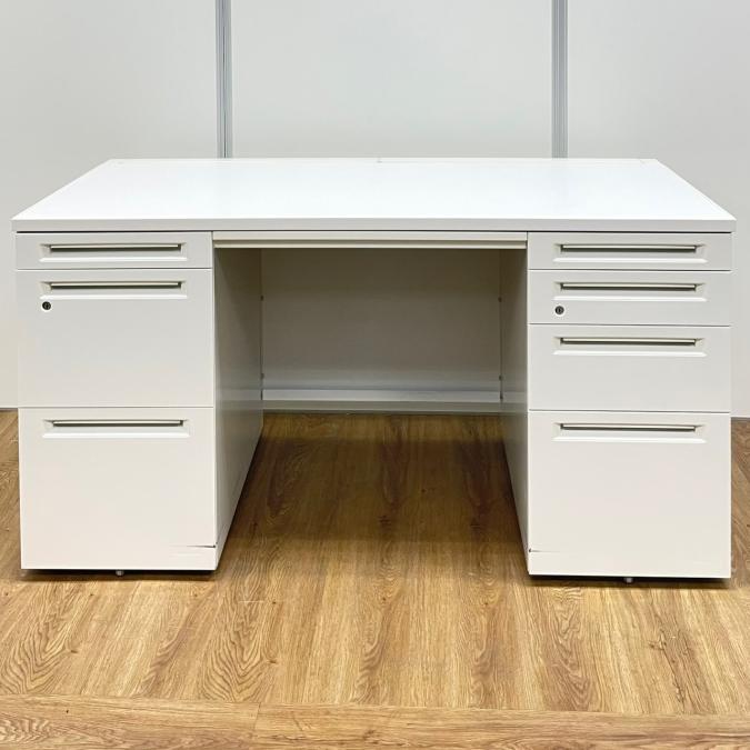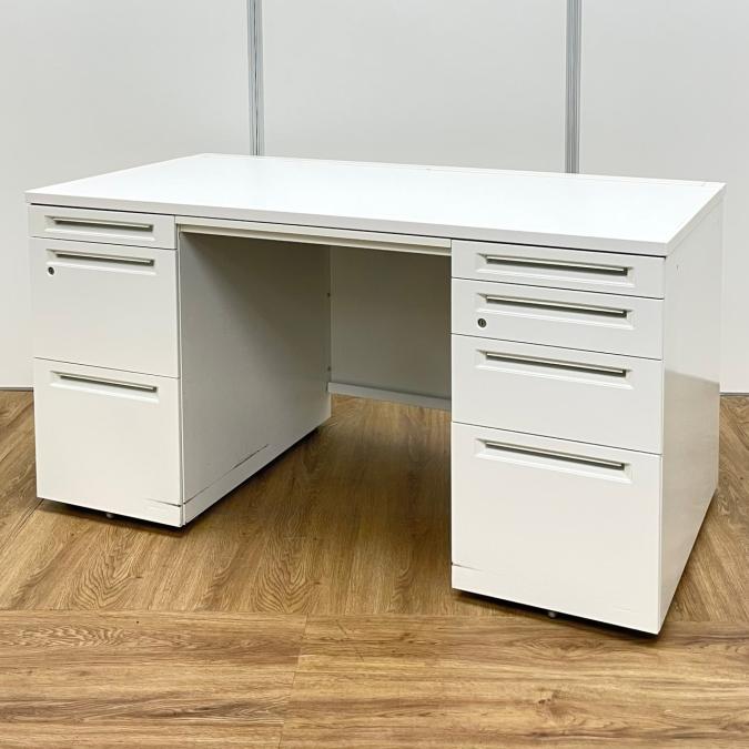 オカムラ製 アドバンスシリーズ ホワイトカラー W1400サイズ 両袖机!!※現物画像※- 京都東寺店