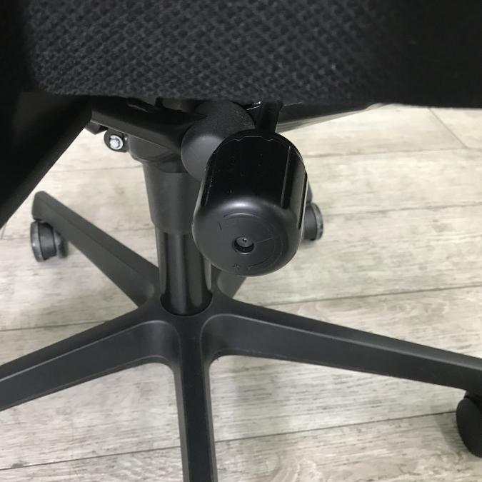 座面の左下にあるレバー操作で座面位置の上下調整(92mm、無段階)が可能です。