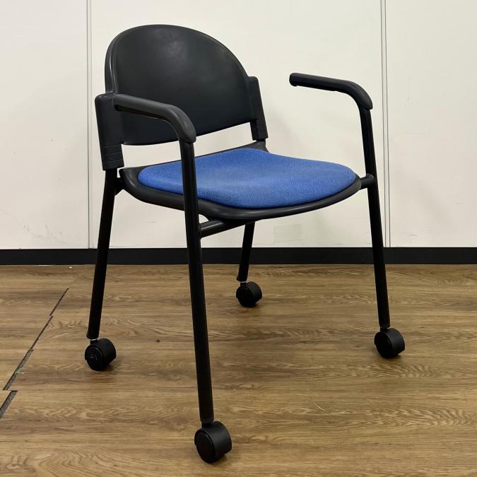 【4脚セット販売!】プラス VMシリーズ スタッキングチェア 肘掛け付 ブルー系- なんば日本橋店