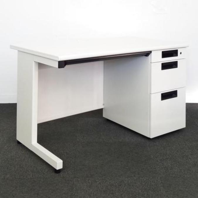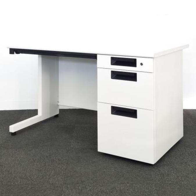 【定番サイズの幅1200㎜!オーソドックスな片袖デスクが入荷!】■プラス(PLUS)製 フラットライン 片袖机 引き出し付き 幅1200 ■ホワイト ※一部袖引き出しへこみあり 【弊社使用欄:A01040197】