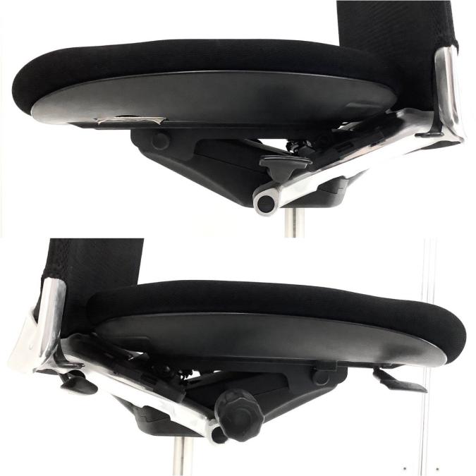 また座面下のレバー操作により、座面を40mmのストロークで好みの位置に調節ができます。