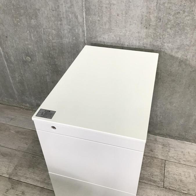 【正面に取っ手が無いフラットなデザイン!キャスター付でレイアウト変更がスムーズ!】■オカムラ(okamura)製 プロユニットシリーズ 3段ワゴン フリアド用ワゴン H650㎜ ■ホワイト ■シリンダー錠 ※キズ・塗装剝がれ有