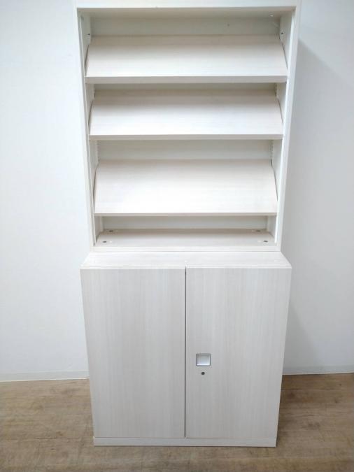 【定価約11万円】【レア商品】【上が雑誌架で下が両開き書庫の上下書庫セット】■オカムラ製 レクトライン 上下書庫セット おつとめ品【B】- 仙台店