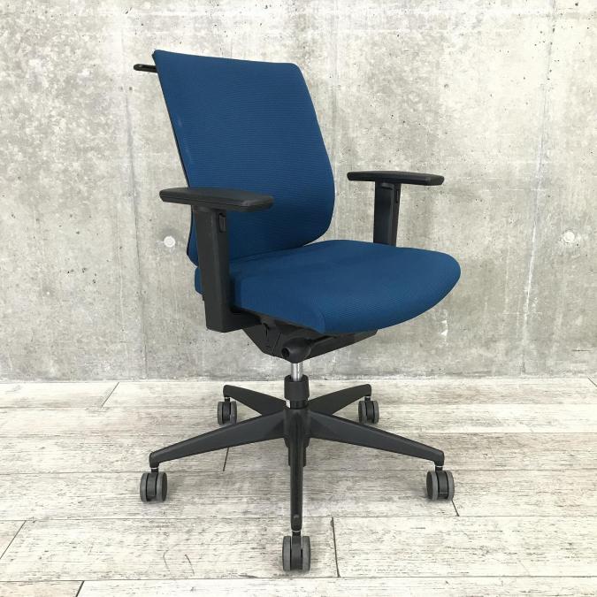 コクヨ ウィザード2 ローバック プルシアンブルー×ブラックフレーム 固定肘付き 使い心地のよい定番シリーズ