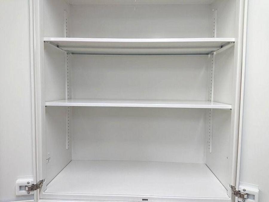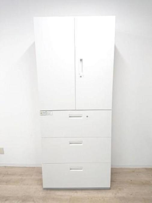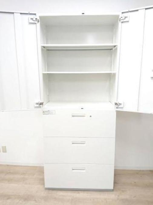 【定価約16万円】【ホワイトカラーの上下書庫セットの入荷です】【上:両開き/下:3段ラテラル書庫】■PLUS製/ホワイトカラー 書庫セット※おつとめ品【A】- 仙台店