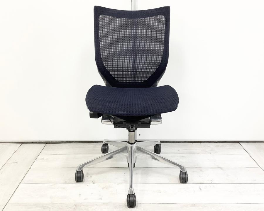 【4脚限定!!】■オカムラ/バロンチェア/メッシュ/ネイビーブルー 座面:メッシュ 肘無しローバックチェア ポリッシュ脚- 豊中・尼崎店