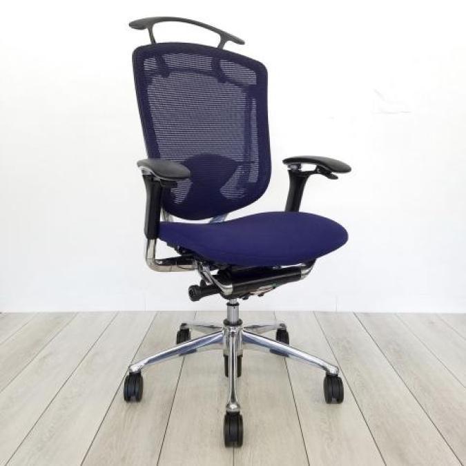 【オカムラ製の最高級チェアが残り1脚限りです!!】オフィスバスターズ 東大阪店 オカムラ製 コンテッサ シリーズ ダークブルー アジャストアーム※可動肘 背/座面メッシュ ランバー 世界で認められた革新的タスクチェア!人間工学に基づいた快適な座り心地を実現! 肘付きハイバックチェア!! 中古 外部倉庫品