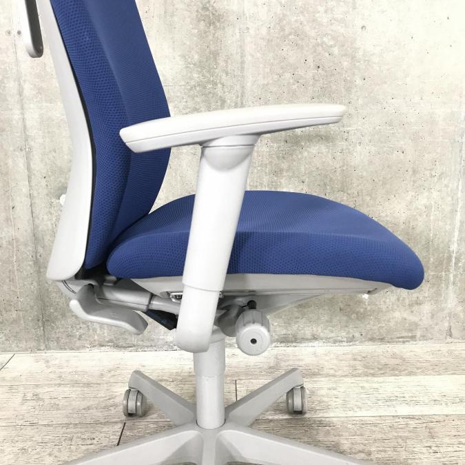 【シンプルなデザインと厚みのあるクッションが大人気!】■オカムラ(okamura)製 スラートシリーズ(sulato) 肘付 ハイバック ■可動肘・ハンガー付 ■ミディアムブルー×ホワイトシェル×グレー脚