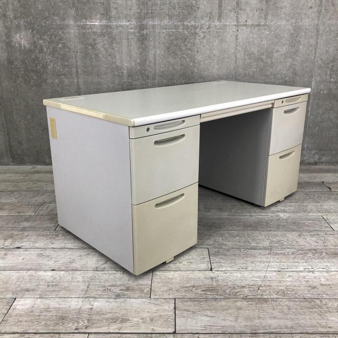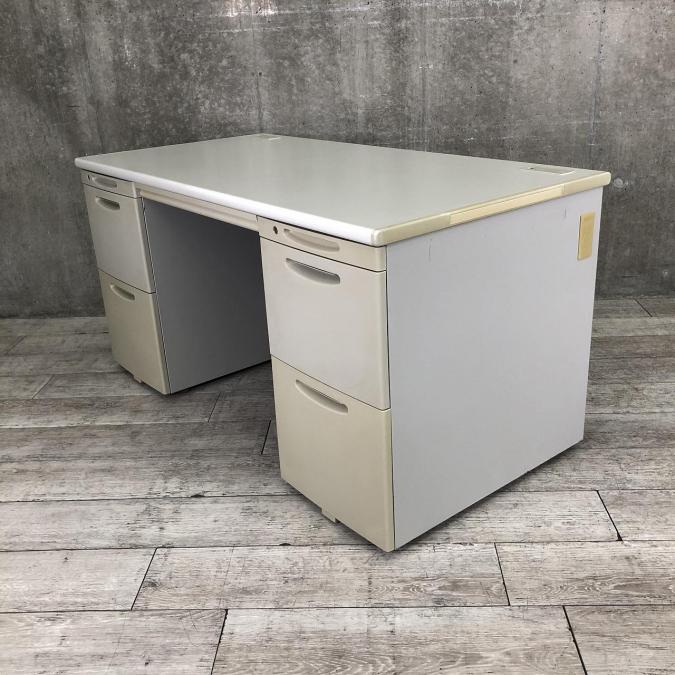 上長席・役員向けサイズ オカムラ SDデスクシステム 両袖机 定番のW1400サイズ 汚れの目立ちにくいニューグレー 鍵付き シリンダー錠
